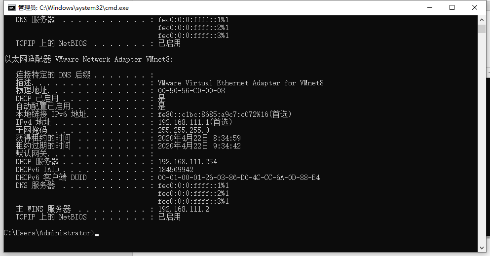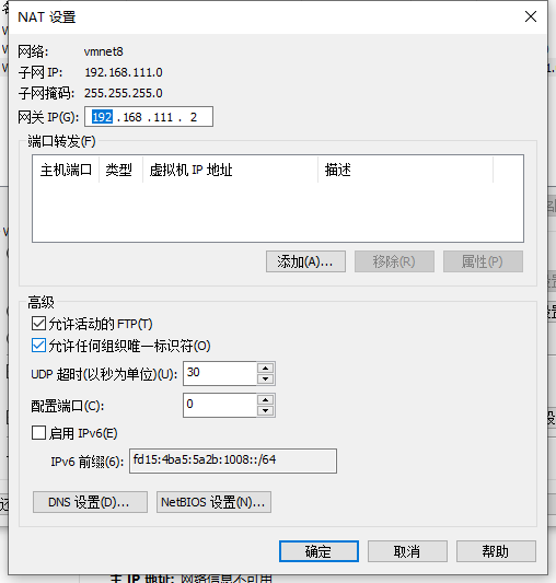 记住现在所连网络的DNS,以及VMnet8的Ipv4地址和子网掩码