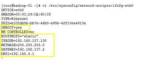vi /etc/sysconfig/network-scripts/ifcfg-eth0