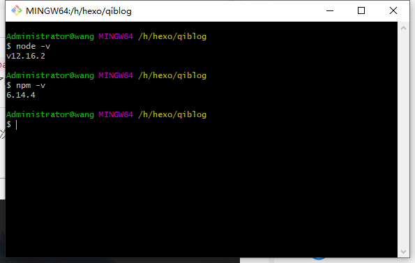 环境变量添加好了之后重新打开 git 即可运行 hexo 命令.